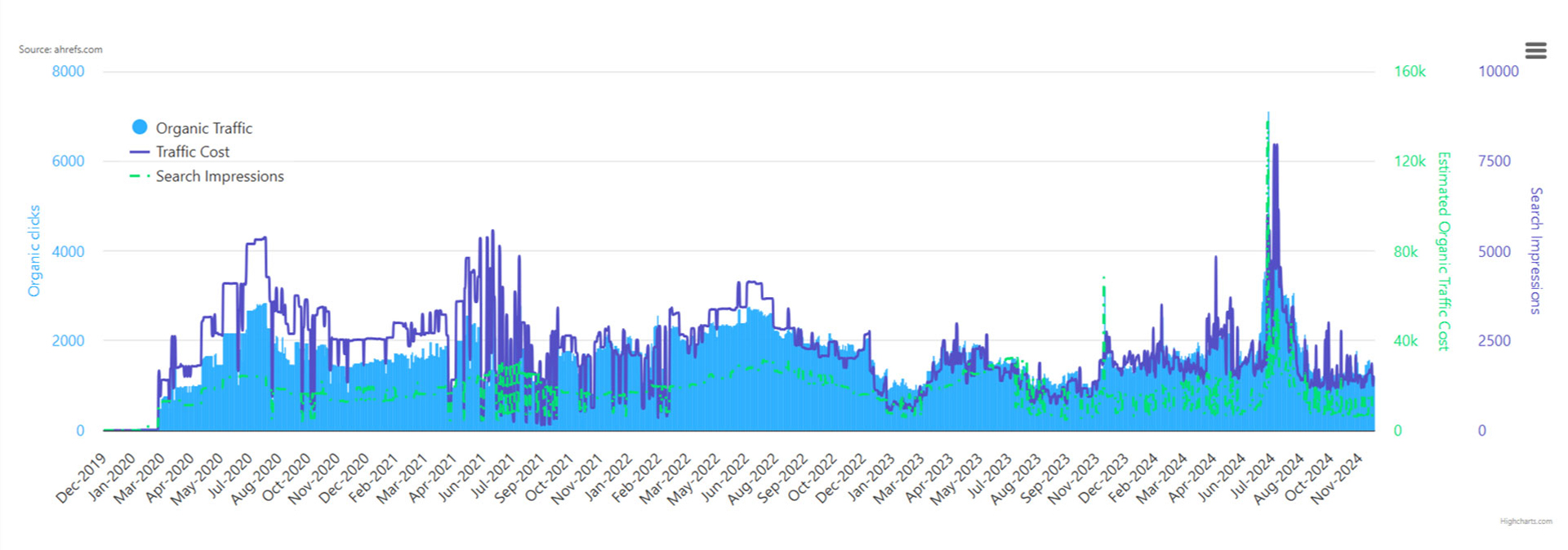 Since the initial start of the SEO platform, CaptainJacks420.com observed a remarkably consistent improvement across various metrics, including an increase in the number of referring domains, which surged from single digits to over 250 as of late 2024. Additionally, the average domain rating and average URL rating saw progressive enhancements, signifying strengthened authority and relevance in the competitive online landscape. The organic traffic metrics depicted a substantial upward trajectory, with the average organic traffic peaking significantly, hinting at the successful outreach efforts and heightened visibility. This growth was mirrored in the organic keyword impressions and the diverse keyword markets targeted, cementing a robust online presence. Throughout the campaign, the dynamic keyword strategy played a crucial role in positioning the brand effectively, transitioning from initial keyword exploration to focusing on high-intent transactional and commercial keywords. The strategic alignment of SEO efforts with these keywords furnished a better user experience and tangible growth in conversions, marking the SEO campaign as an unequivocal success.